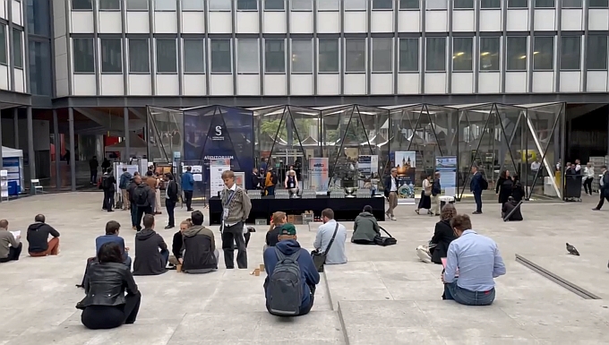 Alors que les conférences et les sessions techniques se déroulaient dans les salles et amphithéâtres de la Sorbonne, les exposants ont quant à eux pu profiter du grand air dans une cour de l’université, bien à l’abri d’éventuelles averses mais malheureusement pas des courants d’air et des éventuelles rafales de vents.