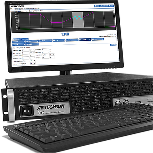 Des puissances DC de 15A à 240A DC peuvent être atteintes en combinant le générateur 3110 avec les amplificateurs d’AE Techron pour concevoir des solutions d’essais répondant aux exigences de certaines applications.