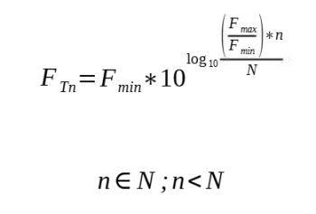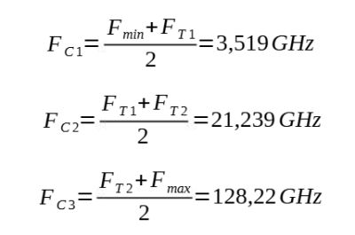 Nous allons désormais nous intéresser à la délimitation des lignes en déterminant les fréquences centrales de chaque segment, délimités par les fréquences de mesure minimale, maximale et les points de transition calculés ci-dessus :