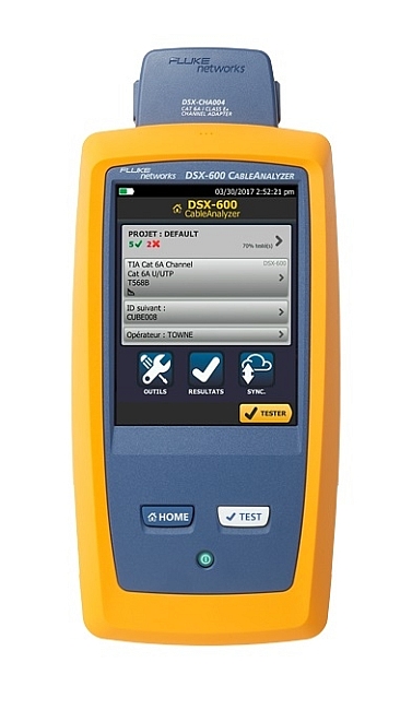 Le DSX-600 CableAnalyzer de Fluke Networks est un certificateur de liaisons cuivre d’entrée de gamme destiné aux projets d’installation de câblage des réseaux cuivre de faible envergure. Il permet la certification des liaisons cuivre de Catégorie 6A et de Classe EA.