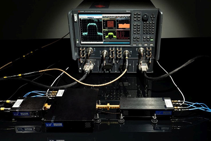 • Ce record a été obtenu avec l’analyseur de composants vectoriels (VCA) du constructeur américain associé à l’amplificateur de puissance (PA) de NTT et NTT Innovative Devices à base de phosphure d’indium (InP) opérant en bande J.