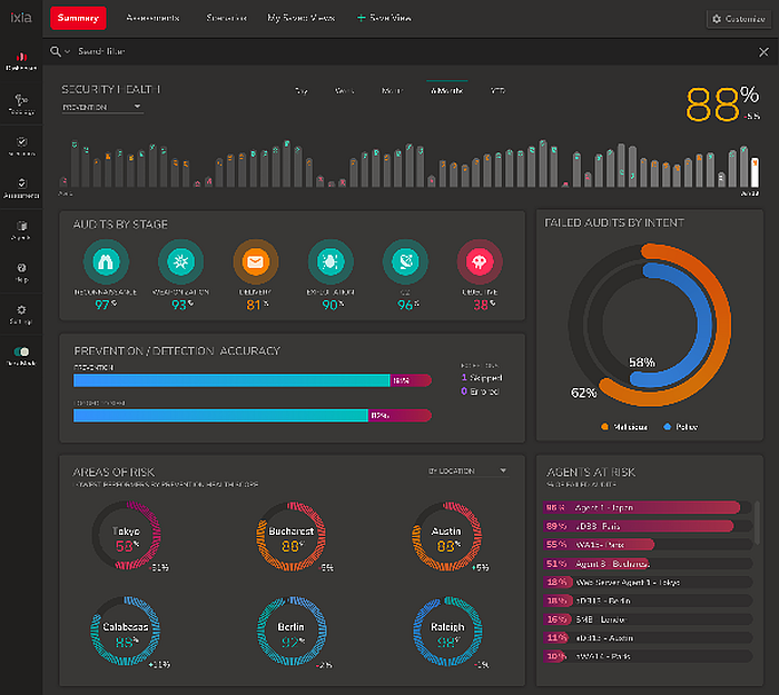 Construit sur une plate-forme de type logiciel as a service, Threat Simulator utilise une série d’agents légers pour simuler des attaques sur un réseau en direct sans exposer les serveurs ou les points d’extrémité de production à des logiciels malveillants ou à des attaques. Threat Simulator dispose d’une bibliothèque de simulations de menaces qui est continuellement mise à jour par le Centre de recherche sur les applications et les menaces de Keysight. Un tableau de bord intégré permet de réaliser facilement des évaluations, de repérer les vulnérabilités et d’approfondir les problèmes. Il comporte des instructions étape par étape pour atténuer les vulnérabilités afin d’aider les équipes chargées des opérations de sécurité à résoudre le problème.