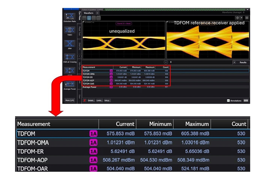 - Suite de mesures TDFOM (y compris TDFOM OMA, ER, AOP et OAR) pour une évaluation de la qualité du signal