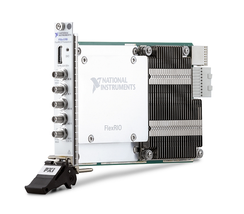 - Le module transcepteur (émetteur-récepteur) NI PXIe-5785 réalise l’acquisition directe de signaux RF jusqu’à 6 GHz et leur génération jusqu’à 3 GHz avec 12 bits de résolution.