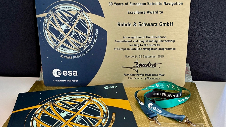 • Rohde & Schwarz a été récompensé par l’ESA qui lui a remis un Prix d’excellence pour sa contribution, au cours des trois dernières décennies, au développement des systèmes de navigation par satellite européens.