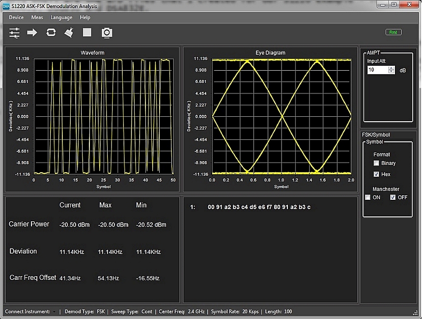 Lorsqu’il est employé avec l’analyseur de spectre DSA832E de Rigol, le logiciel d’analyse de démodulation SA1220 fournit aux ingénieurs un ensemble d’outils pour étudier, visualiser et analyser des signaux ASK et FSK.