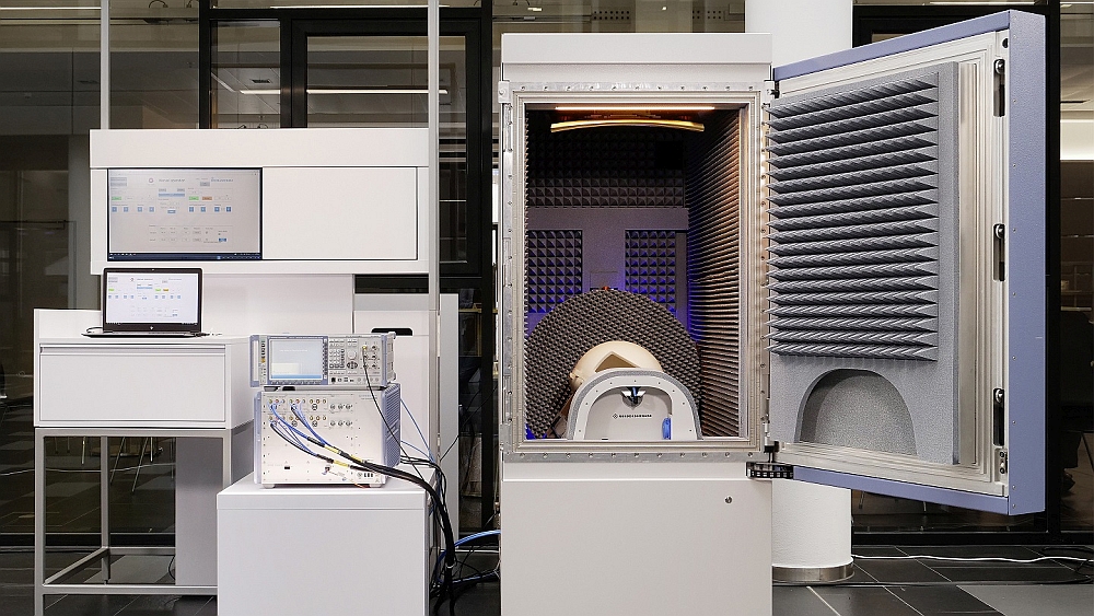 - Afin d’effectuer les essais par voie hertzienne (OTA), la solution exploite le nouveau réflecteur CATR R&S ATS1800C au sein de la chambre d’essai 5G NR mmWave.