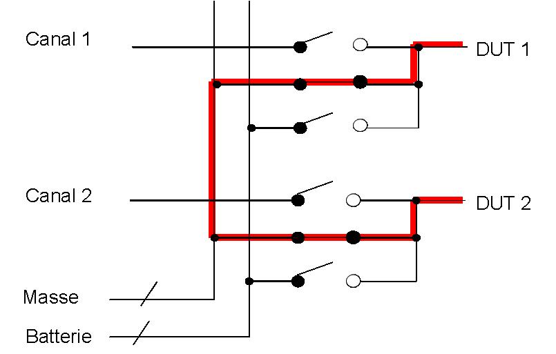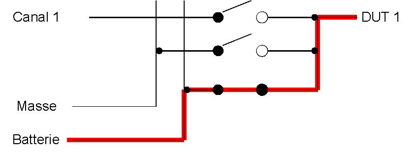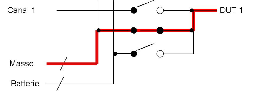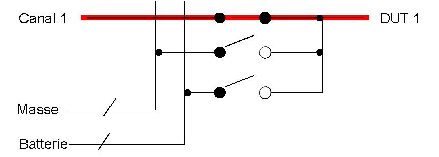 Pour simuler un court-circuit à la masse ou la batterie, la ligne du signal est connectée d’une ligne ou d’un bus de défaut externe vers le calculateur. Les bus de défauts peuvent être configurés pour simuler des lignes à la masse ou à des tensions d’alimentation.